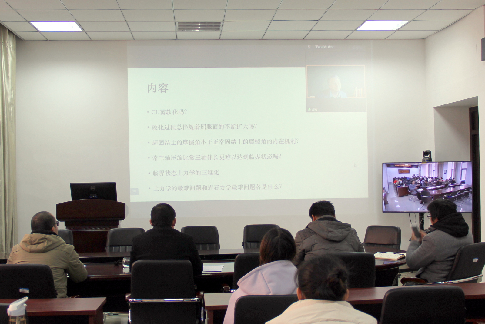 125日,应威廉官网中国官方网站邀请,北京工业大学郑宏教授通过腾讯会议平台为我院师生作了题为“土力学研习的几个心得和疑惑”的学术报告。来自北京工业大学、中国科学院武汉岩土所、同济大学、东南大学、哈尔滨工业大学、天津大学、北京航空航天大学、中山大学、武汉大学、中南大学、山东大学、重庆大学、河海大学、上海大学、中国地质大学、西南交通大学、南京工业大学、贵州大学、湘潭大学、华东交通大学、湖南科技大学、三峡大学、湖北工业大学、华北水利水电大学、郑州航空工业管理学院和我校等单位的300多位同行专家、博士后、博士生、硕士生共同聆听了报告。威廉官网中国官方网站院长周葆春,副院长肖琪聃,青年教师马文强、马全国、张金浩、梁维云和全体研究生参加了此次报告会,报告会由威廉官网中国官方网站院长周葆春教授主持。