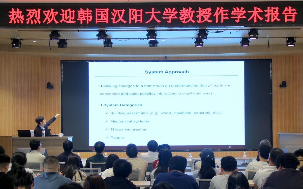 Shin Min Jae教授在报告中介绍了他提出的优化建筑性能的综合系统方法,融合热力学机制、湿度管理策略与机械系统设计,从整体角度提升建筑的能效与居住舒适度。报告重点讲解了辐射、传导和对流三种热传递机制,强调在不同气候条件下采用适应性策略的重要性;同时指出建筑气密性与热边界对节能降耗的关键作用,并推荐使用具有隔热与空气屏障双重功能的新型材料。在湿度管理方面,Shin教授系统分析了体积水、毛细水和水汽扩散三种路径的控制技术,强调源头治理与材料选择的协同作用。在机械通风系统设计方面,对比评估了排气式、送风式和热回收/能量回收型通风系统在控制室内压力、降低能耗和保障居住健康方面的性能差异。通过整合环境适应性设计、材料科学创新与机械系统优化,Shin教授提出了一种高韧性、高能效建筑的系统构建路径。