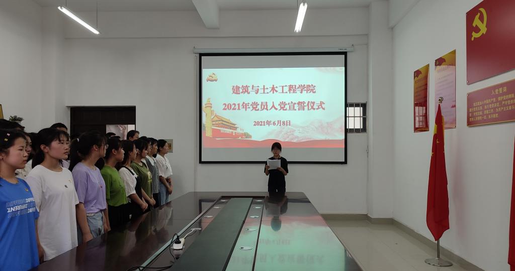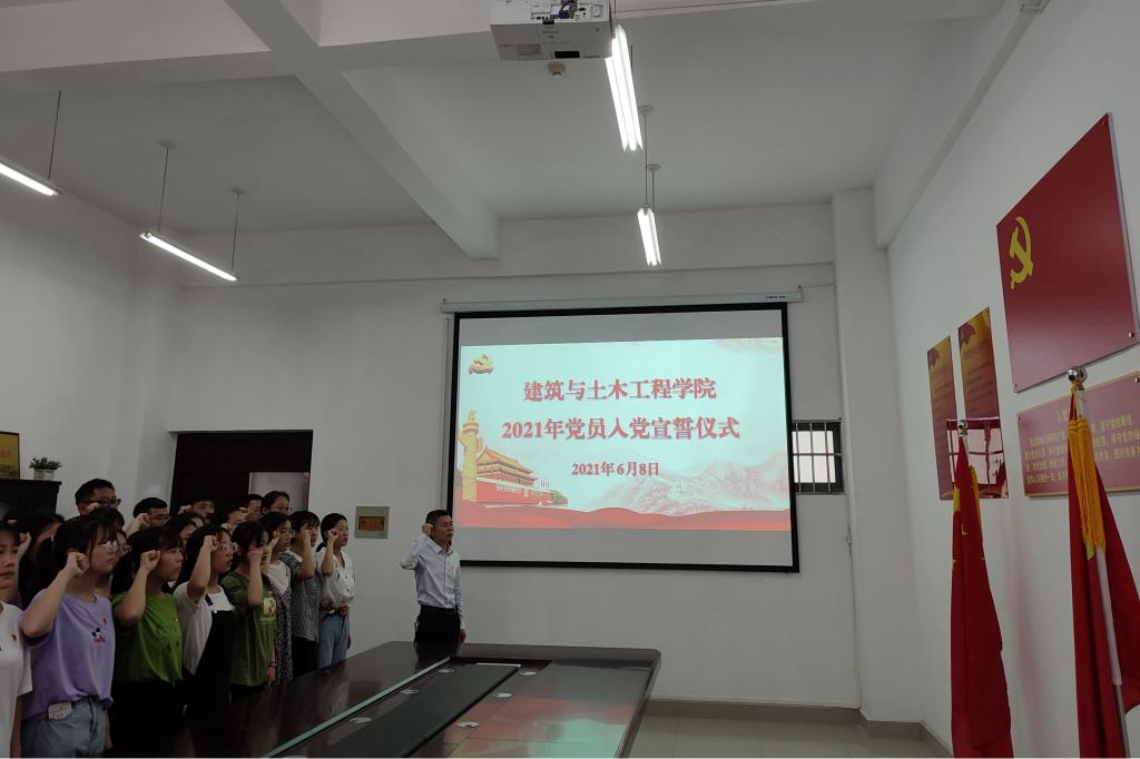 6月8日下午,威廉官网中国官方网站在综合实验楼203会议室举行2021年上半年新党员入党宣誓仪式。出席仪式的有学院党委书记黄学玉、党委副书记方明科、学生党支部书记、35名新党员、部分老党员及入党积极分子代表。仪式由方明科主持。