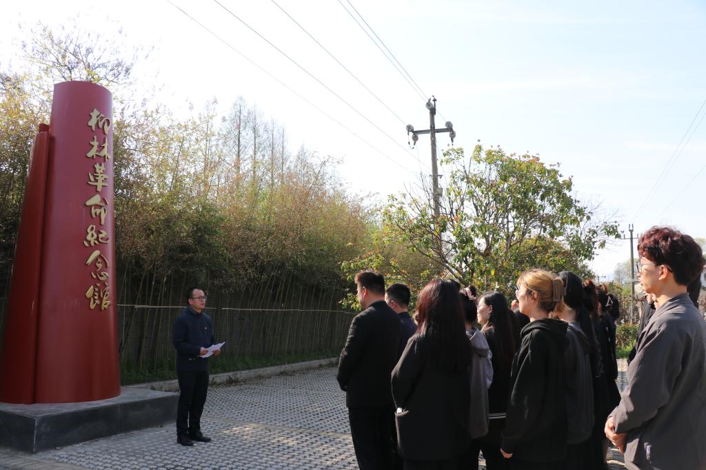 在纪念馆门前,全体人员集体默哀,深切缅怀为革命事业前仆后继、英勇献身的先烈们。随后,学院团委老师冯舒心带领大家重温入团誓词,表达对先烈的深切悼念之情。团员代表彭梦韩发表演讲,号召团员青年从革命先烈身上汲取奋发的力量,以积极的态度和高昂的斗志投入到学习生活中。冀鹏作了题为“缅怀革命先烈 争当时代先锋”的微团课,他指出,柳林是豫南红色革命的摇篮和发源地,团员们一要了解柳林不同时期的革命历史,做到学史明理、学史增信、学史崇德、学史力行。二要牢记革命先烈的精神品质,他们为革命抛头颅、洒热血,有了他们,才有硝烟散尽后的万里晴空。三要传承红色基因,争当时代先锋,坚定不移听党话,跟党走,立志做有理想、敢担当、能吃苦、肯奋斗的新时代好青年。