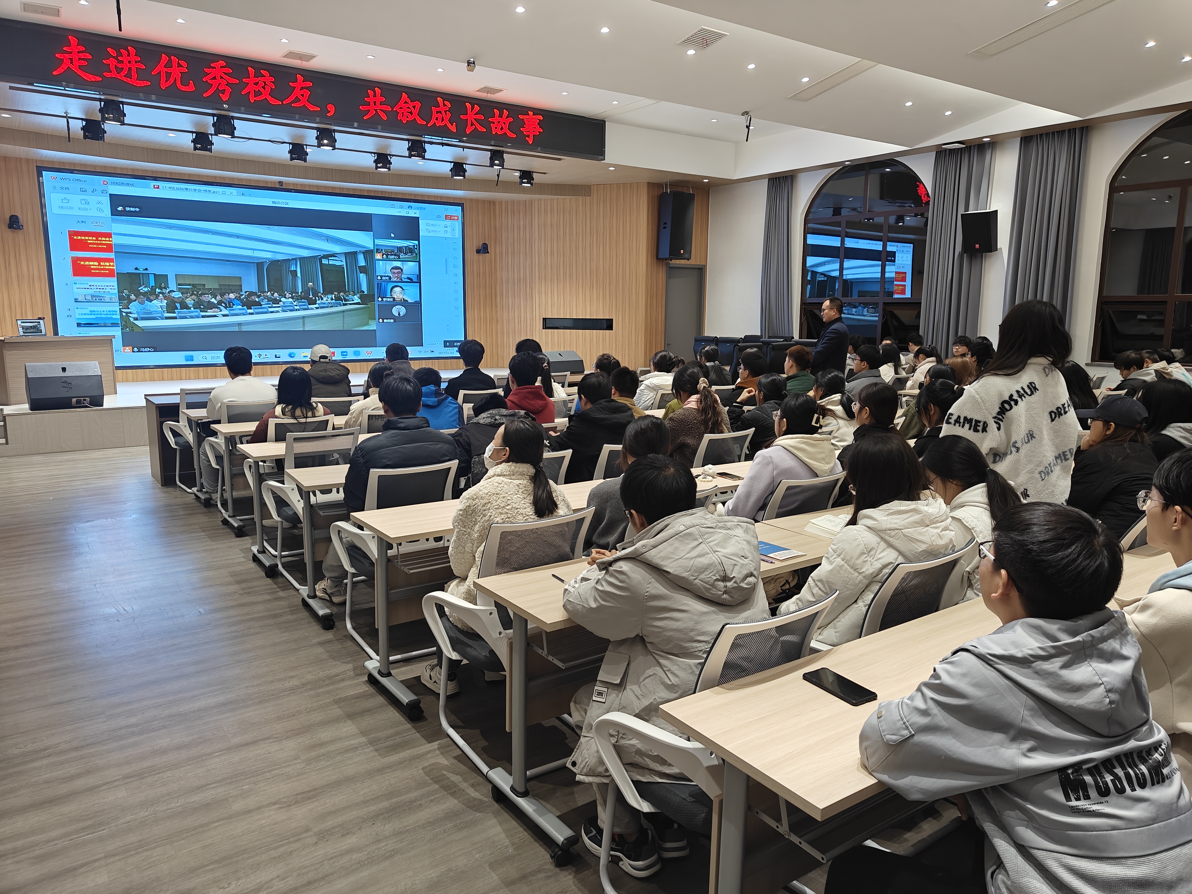 11月23日晚,威廉官网中国官方网站在谭山书院博雅讲堂举办“走进优秀校友 共叙成长故事”校友故事会(第三场),2011级土木工程专业校友李禄欣,2014级工程管理专业校友赵旺应邀在线为150余名在校生作专题辅导报告。报告会由学院党委副书记冀鹏主持。