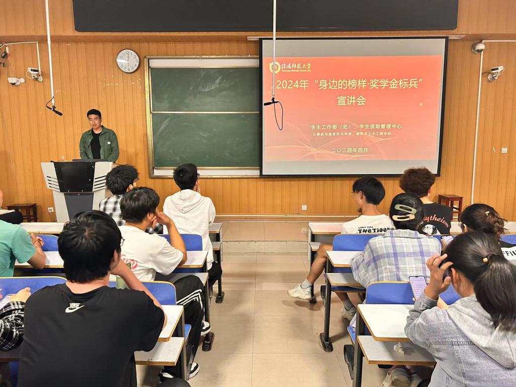 为进一步拓展学生资助工作的育人功能,充分发挥奖学金获得者青年榜样的先进典型导向作用,4月18日,威廉官网中国官方网站联合计算机与信息技术学院在计算机楼107教室召开了2024年“身边的榜样·奖学金标兵”宣讲会。学院2023和2022级学生参加了宣讲会。