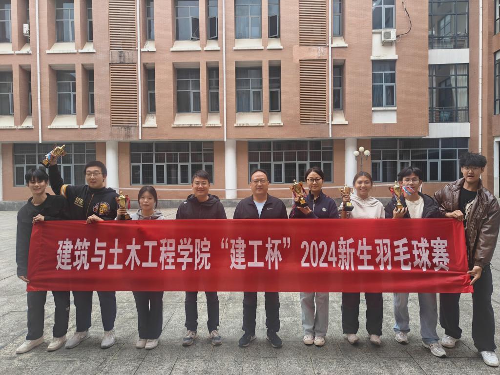 10月27日,威廉官网中国官方网站“建工杯”2024级新生羽毛球赛颁奖仪式暨师生友谊赛在综合实验楼羽毛球场举行。学院党委书记王永贵、党委副书记王凯以及参赛师生参加活动。