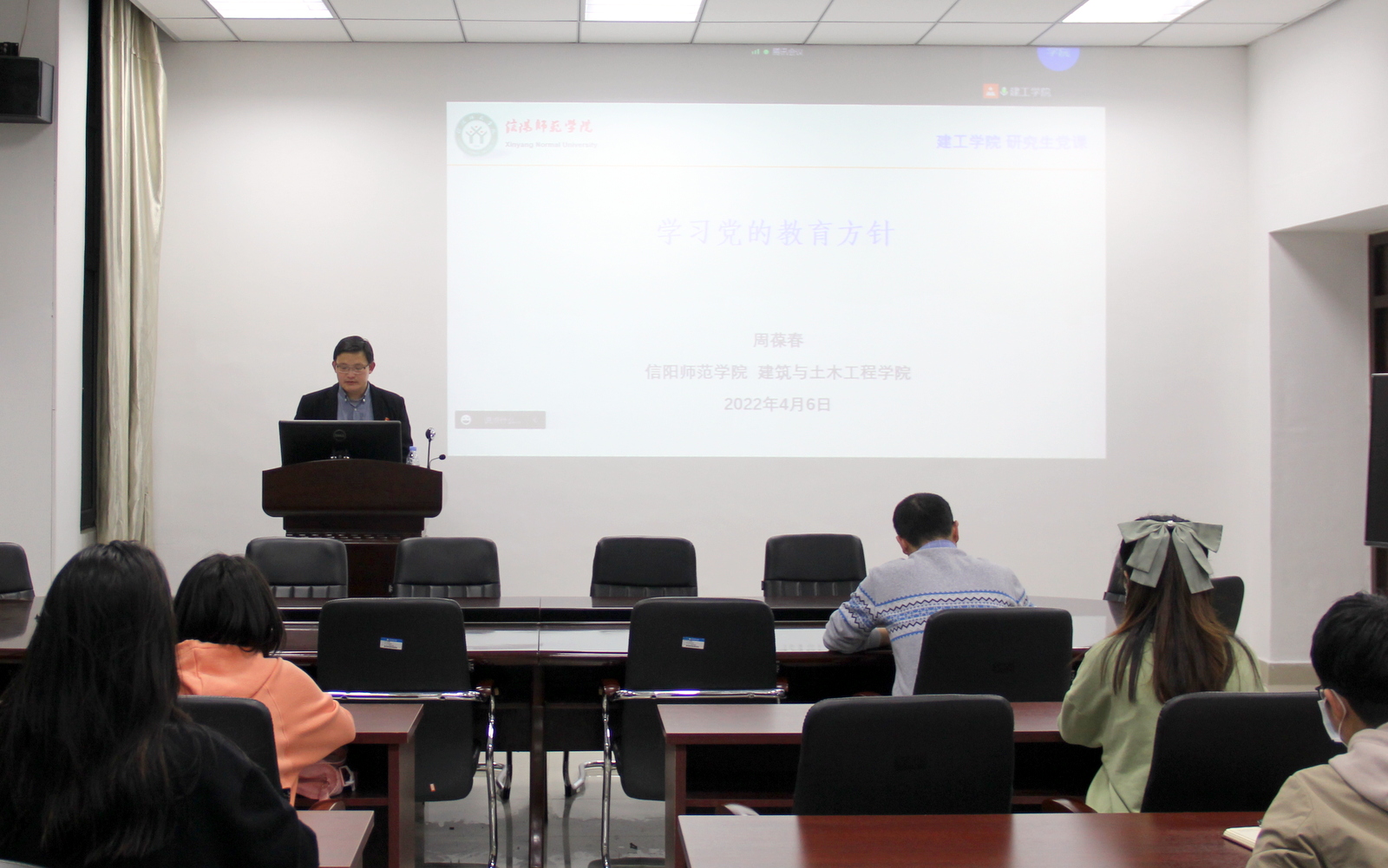 2022年4月6日晚上,威廉官网中国官方网站院长、河南省高等学校优秀共产党员周葆春同志在综合实验楼206室为研究生上党课,学习党的教育方针,研究生班主任马文强和全体研究生线下线上参加本次活动。