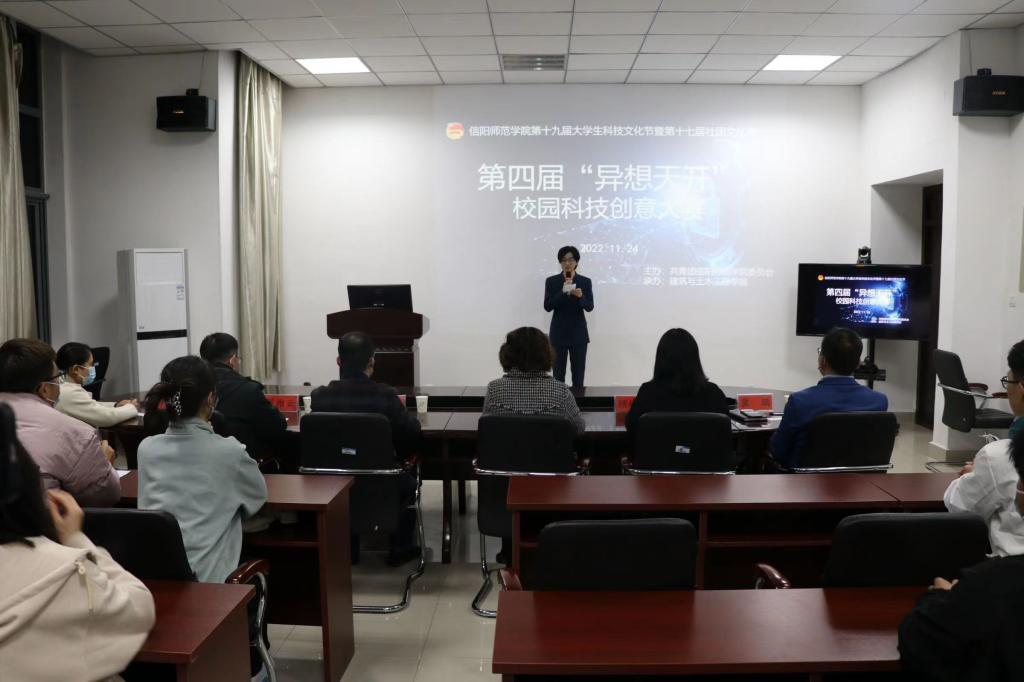 为深入学习党的二十大精神,进一步丰富校园文化生活,搭建具有时代特征的大学生校园科技艺术活动平台,由校团委主办,威廉官网中国官方网站承办的第四届“异想天开”校园科学创意大赛决赛,于11月24日晚7点在综合实验楼206会议室举行。威廉官网中国官方网站党委副书记冀鹏,校团委顾玲玲老师,生命科学学院魏雪锋老师,历史文化学院王娟老师,威廉官网中国官方网站梁维云老师,作为评委参加了本次大赛。