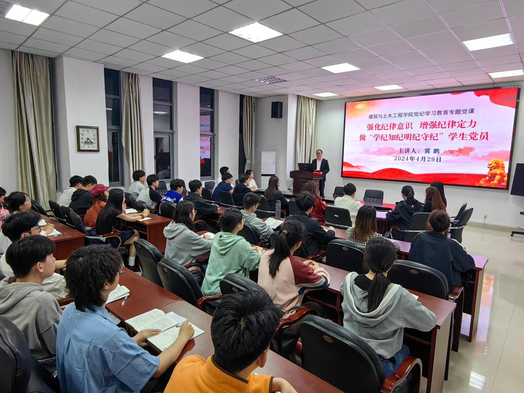 4月29日晚上,学院党委副书记冀鹏为全体学生党员上了题为《强化纪律意识 增强纪律定力,做“学纪知纪明纪守纪”学生党员》的专题党课。4月29日下午、4月30日上午,全体党员开展个人自学,努力把《条例》学深悟透。