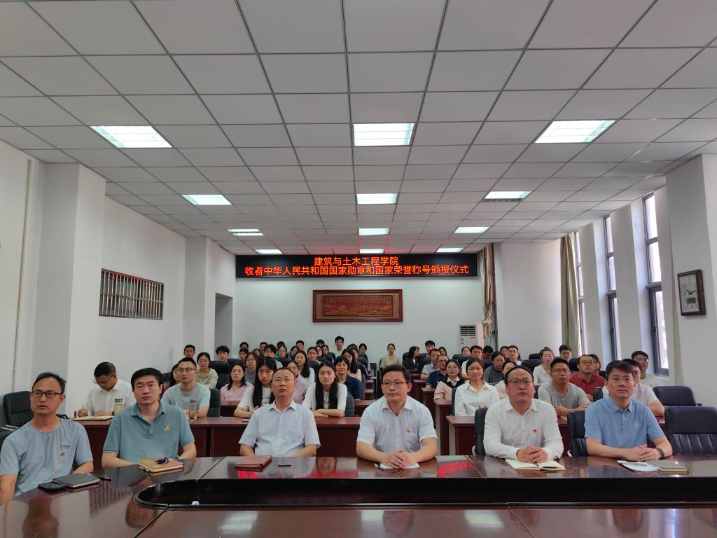 9月29日上午10时,中华人民共和国国家勋章和国家荣誉称号颁授仪式在人民大会堂隆重举行。中共中央总书记、国家主席、中央军委主席习近平向国家勋章和国家荣誉称号获得者颁授勋章奖章并发表重要讲话。威廉官网中国官方网站党委高度重视,积极组织师生同步收看颁授仪式。学院领导全体班子成员、师生代表60余人在综合实验楼206会议室集中收看了颁授仪式。